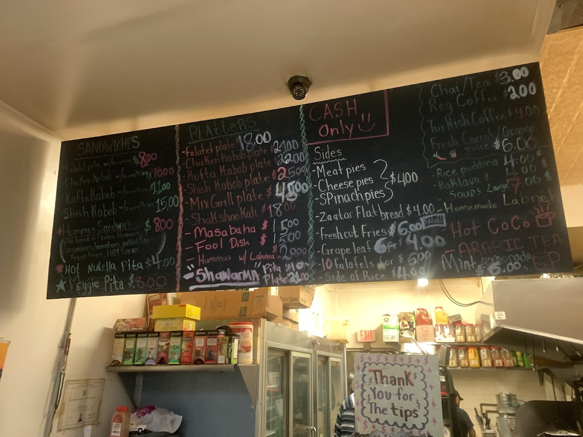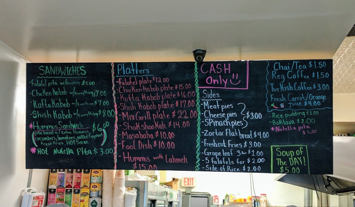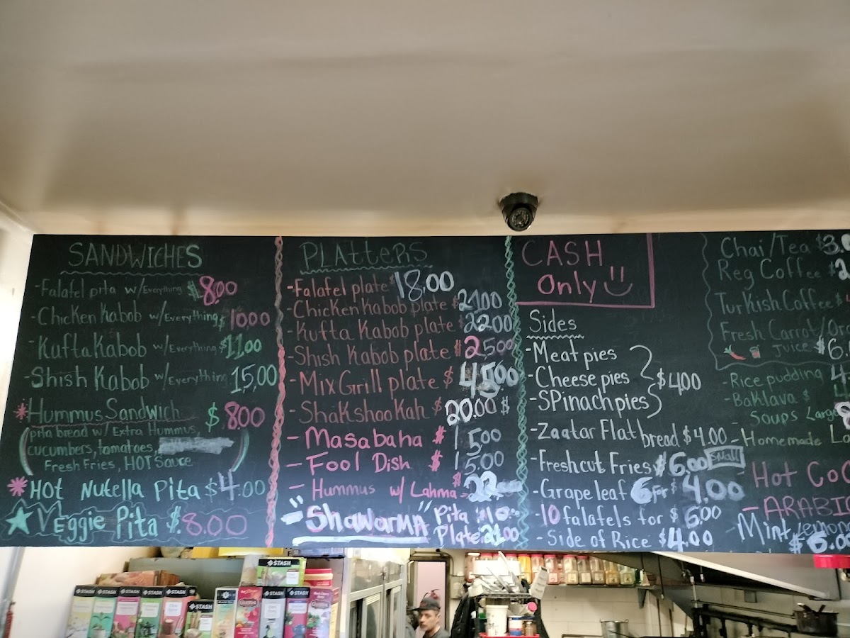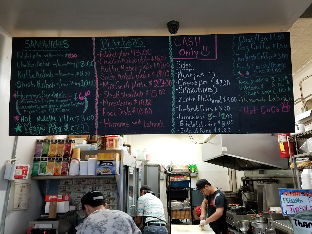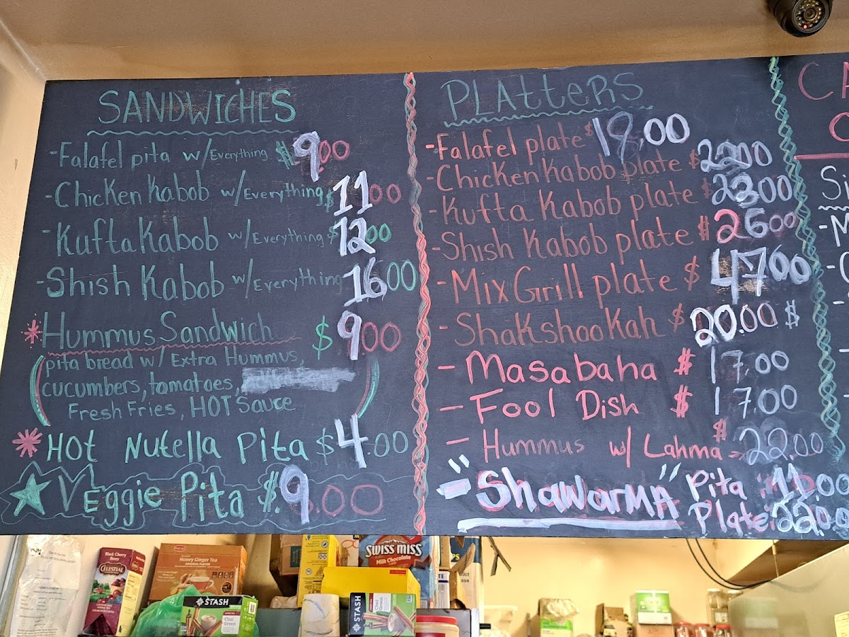 For those looking for a heartier experience, the platter selections stand out. Choices like Chkn Kabob, Kufta Kabob, Shish Kabob, Mix Grill, and the Falafel Platter offer a more complete meal and are ideal for anyone who wants variety on a single plate. These platters reinforce the idea that the menu is designed to satisfy both light appetites and bigger cravings.